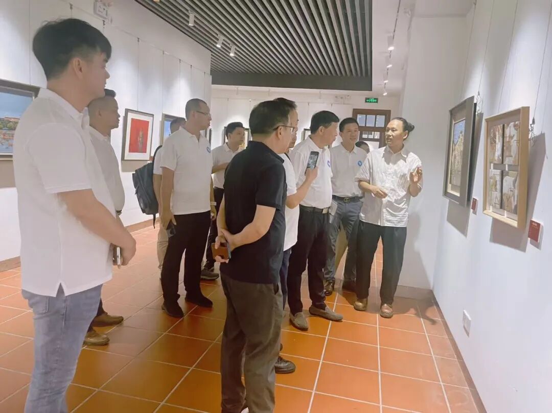在王书记的带领下,企业家们共同参观了第三届集美·闽台大学生美术作品展。展览汇集了来自集美大学及台湾多所高校学子的百余件作品,涵盖绘画、雕塑、设计、影像等多个类别。作品既展现了闽台地域特色文化,如闽南古厝、台湾民俗等元素,也融入了青年学子对时代发展、生活美学的思考,兼具艺术性与思想性。企业家们仔细观赏每一件作品,不时与王高尧书记交流作品的创作理念与艺术价值,对两岸学子的创作水准及展览所传递的闽台文化魅力给予高度评价。