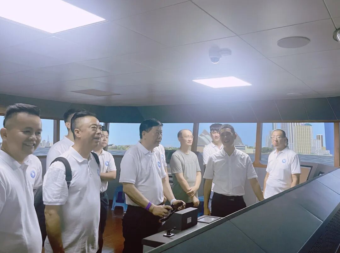 随后,在王书记的带领下,企业家们实地参观了集美大学航海学院的核心教学与科研设施,并重点体验了学院自主研发的航海模拟器。该模拟器高度还原了真实船舶驾驶场景,涵盖了不同海况、航线及应急处置模拟功能。企业家们通过亲自操作,直观感受了航海驾驶的操作流程与技术要点,深入了解了模拟器在船员培训、船舶安全运营模拟等方面的应用价值,对学院的教学实训水平与技术研发能力给予高度评价。